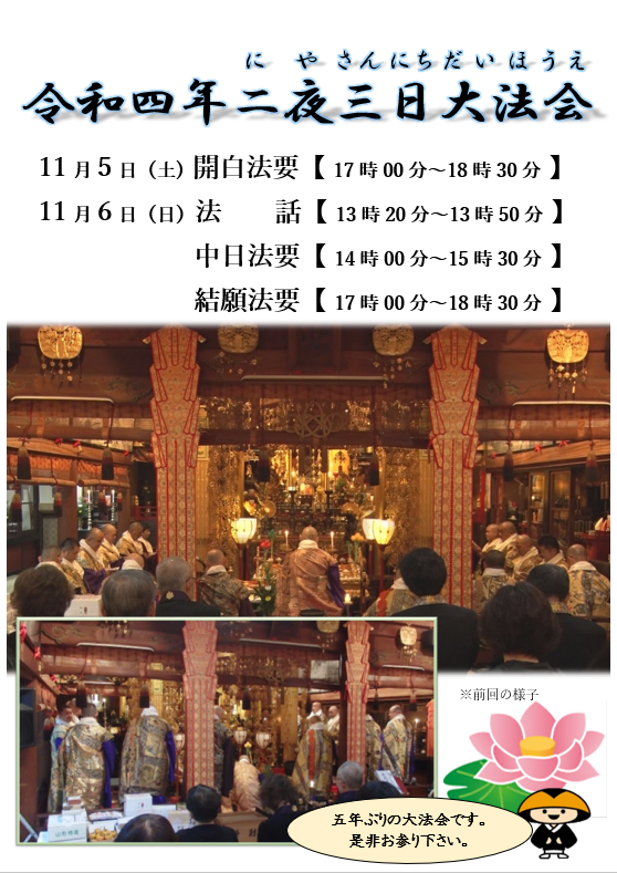 秋冷の候、皆様には益々御清栄のこととお慶び申し上げます。平素は何かと当山の護持発展に御高配と御尽力を賜り厚く御礼申し上げます。